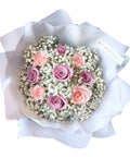 Pastel Allure Flower Bouquet (Pink & Purple Rose + White Baby Breath)